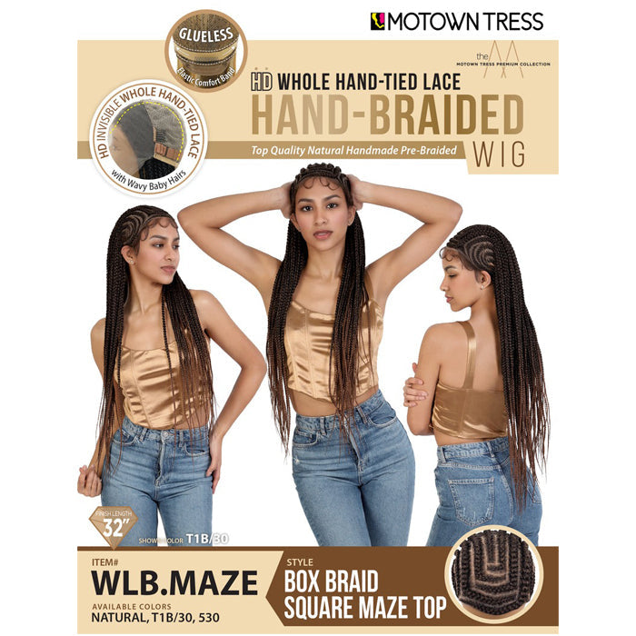 Motown Tress Glueless HD Whole Hand-Tied Hand-Braided Lace Wig - BOX BRAID SQUARE MAZE TOP
