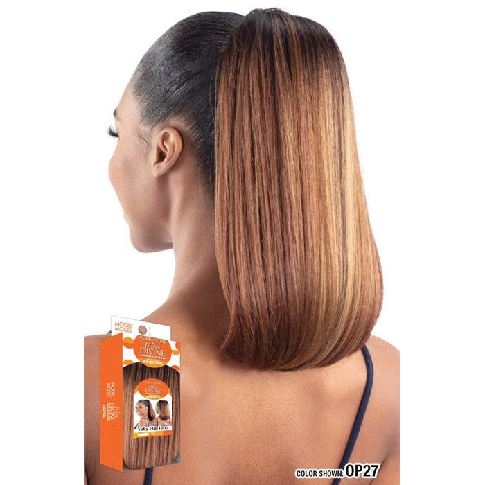 Model Model Miss Divine Human Hair Blend Drawstring Ponytail - YAKI FLIP IN 14"