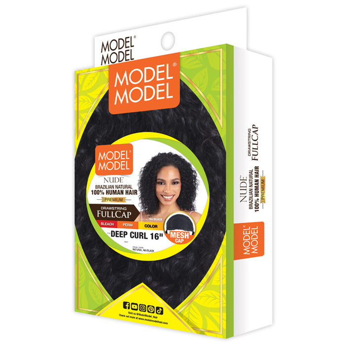 Model Model Nude Brazilian Natural 100% Human Hair Drawstring Full Cap Half Wig - DEEP CURL 16"