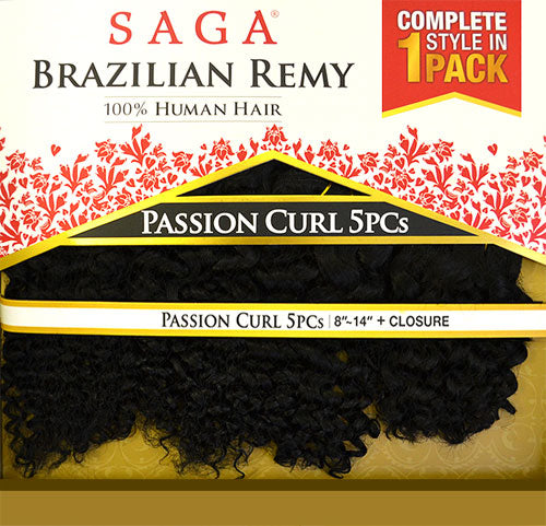 Shake-n-go 100% Brazilian Remy Human Hair Saga PASSION CURL 5 PCS WEAVE 8"-14" + CLOSURE