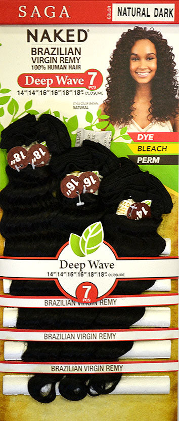 NAME: Saga Naked 100% Brazilian Virgin Remy Human Hair Weave DEEP WAVE 7Pcs (10/12/14)COLOR SHOWN: NATURAL