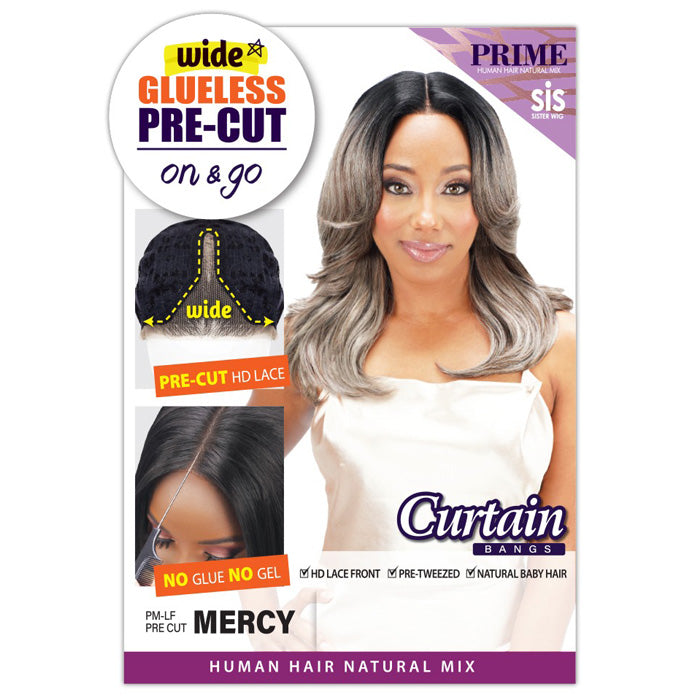 Zury Sis Prime Glueless Wide Pre-Cut On & Go Human Hair Blend HD Lace Front Wig - MERCY - Curtain Bangs