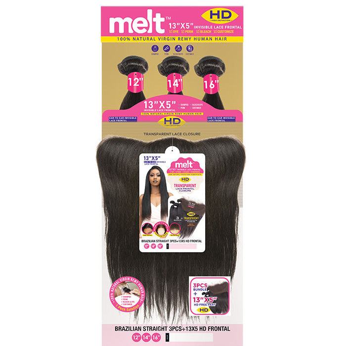 Janet Collection 100% Virgin Remy Human Hair Weave 3Pcs & 13X5 HD Lace Closure - BRAZILIAN STRAIGHT 12"14"16"