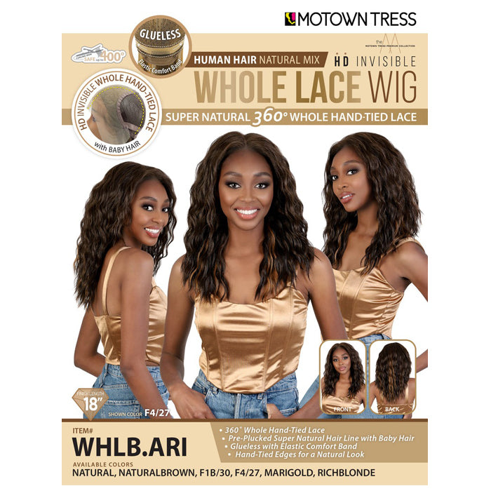 Motown Tress Glueless Human Hair 360 HD Whole Lace Wig - WHLB.ARI