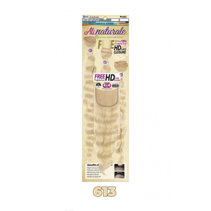 Chade Fashion Ali Naturale Human Hair Blended HD 4X4 Closure 18"/20"/22" - Ocean Wave