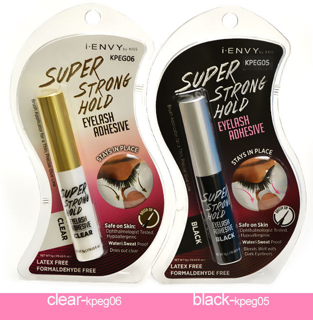 - I-envy Super Strong Hold adhesives have very strong adhesiveness that your eyelashes won't come off until you take them off. They are safe on skin as they are made of medical-use adhesive tape glue which Ophthalmologist tested and Hypoallergenic approved.