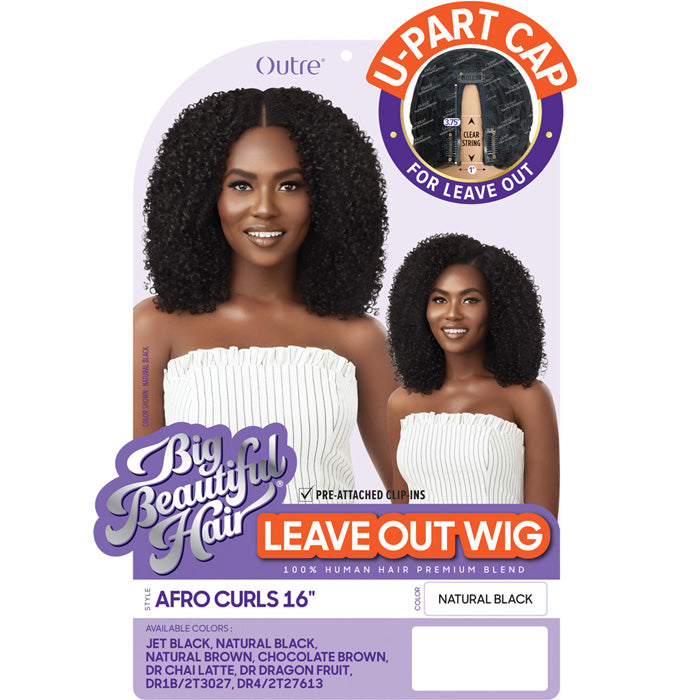 Outre 100% Human Hair Blend U Part Cap Leave Out Wig - AFRO CURLS 16