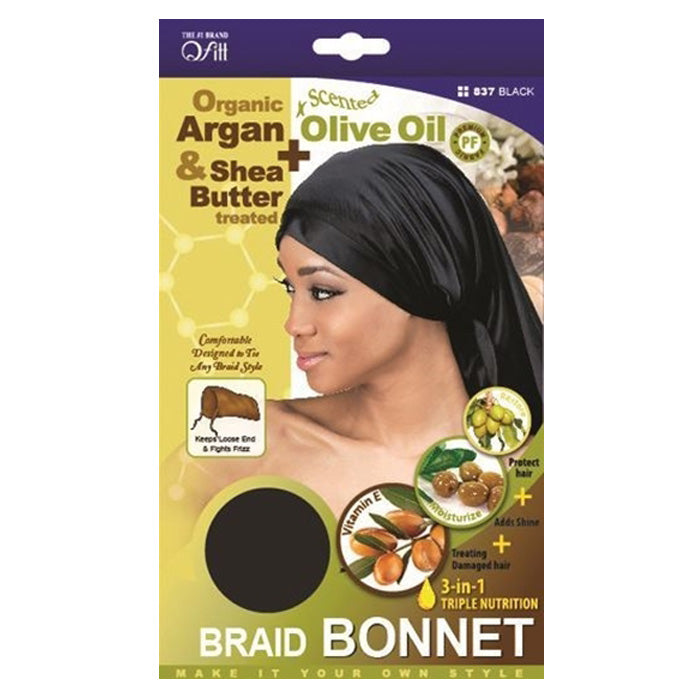 Qfitt Organic Argan & Shea Butter Treated Braid Bonnet - Black